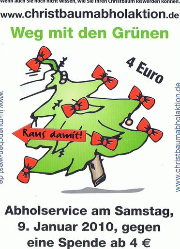 UPD: Отгадка, как и следовало ожидать, была всем ясна с самого начала. Речь шла о новогодней елке (der Christbaum), которую и предлагали вывезти на мусор за небольшие деньги. Просто в Германии не так-то легко избавиться от громоздкого мусора, и елки либо забирают только в определенные дни городские службы, либо их нужно распиливать на маленькие кусочки, чтобы они поместились в небольшие мусорные ящики, либо сдавать за деньги, что и предлагают в рекламе.